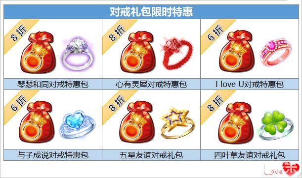 2.11-2.17,商城仪式道具和伴侣道具限时团购价,可以八折优惠购买哦~天长地久,海誓山盟还有各种真爱情书,统统等你带回家~