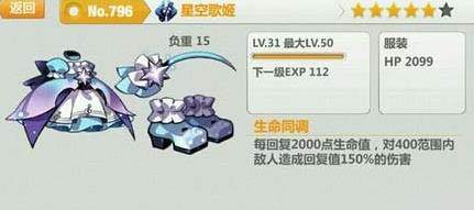 崩坏学园2星空歌姬测试,回血反伤神衣。每回复2000生命值,对400范围内的敌人造成伤害值1.5倍或者2倍的伤害,毫无疑问是个好评满满的衣服,堆血量配合本身400半径的范围简直叼叼的。