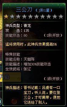 如图所示,武将专用神兵可以升级到3阶激活武将独有的特殊技能。