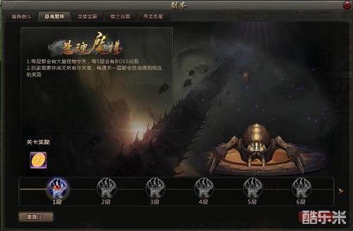 2.玩家可通过该界面查看悬魂魔梯的介绍和规则、当前怪物形象、关卡奖励以及位于的魔梯层数。