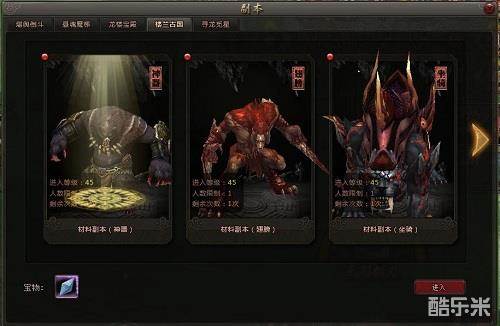 2.界面中显示各个等级的副本,以及副本的名称、进入等级、人数限制、剩余次数以及副本最终BOSS形象。