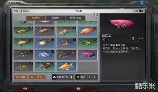 血红龙是肉食型淡水鱼类,淡水鱼血红龙可以说是比锦鲤还要稀少的水产,从最常见的秘鲁神仙到红海黄金蝶都有,甚至还有血红龙鱼,这些鱼在游戏中肯定更值钱。特别是血红龙鱼,价格绝对比锦鲤高很多,至于为什么,其实道理是非常简单的,比锦鲤还难掉的鱼能不贵嘛。