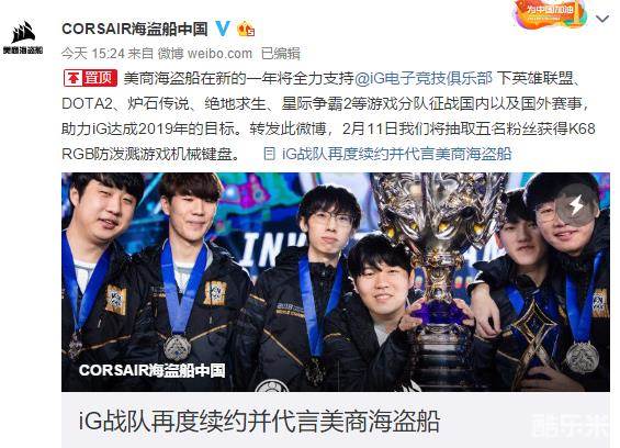 英雄联盟美商海盗船与iG续约 助iG达成19年目标
