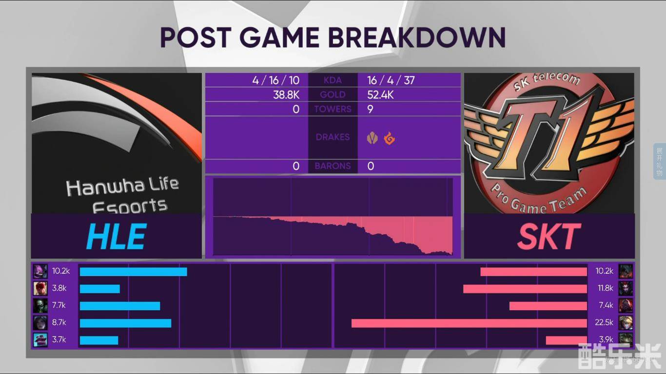 2019LCK春季赛年前最后一场比赛,SKT直落两局击败HLE,在年前坐稳了联赛第三的位置。