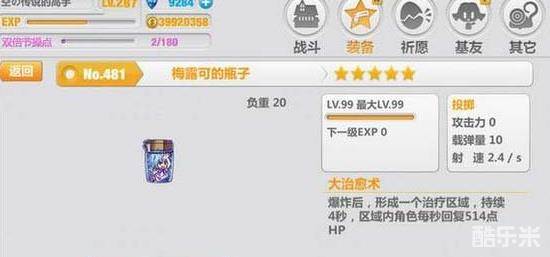 崩坏学园2梅露可的瓶子实用价值分析,俗称大妹汁,一个五星非金光不吃保底的武器,完爆大批六星神器。永动的奥义,不死的象征,有大妹没有带不动的装备,回血太过强大。