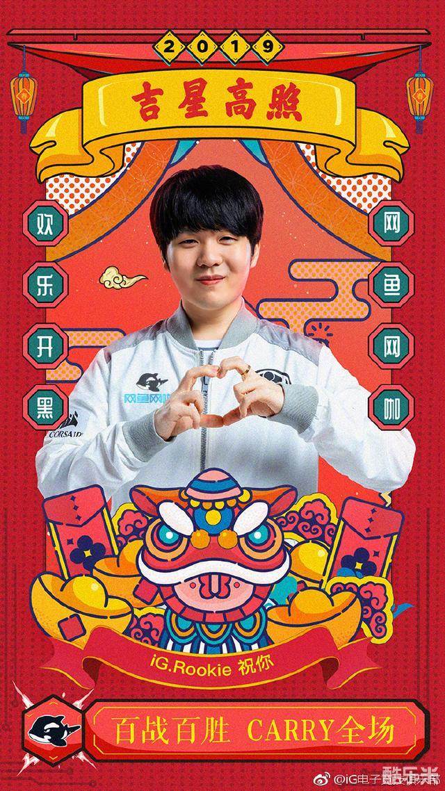 作为去年的S赛冠军,IG今年可以说是粉丝大涨,这次春节自然也是要给粉丝们送祝福的,可以看到IG这次的海报非常的喜庆,团队支柱Rookie也是作为牌面出现在初一的海报中,IG本次的主题是“百战百胜,Carry全场”可以说也是相当的接地气了。