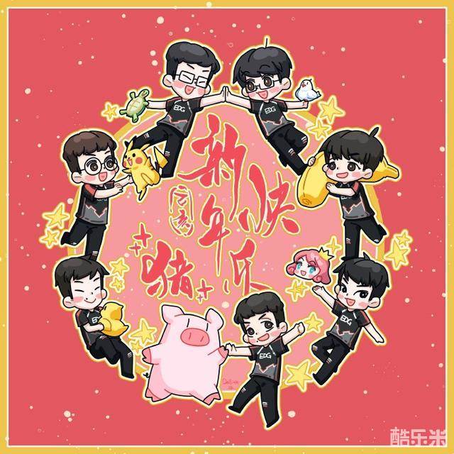 最后就是EDG战队了,与RNG相同的是EDG本次新年海报的风格也是可爱风,不过与RNG不同的是EDG的新年海报全体队员皆有出现,整体风格非常讨喜,选手们的特征也塑造的很好,海报的主题是平安顺遂,喜乐无忧。值得一提的是这个海报并非俱乐部出品,而是粉丝们自己弄的,不得不说EDG真的是俱乐部赢家了,连新年海报都有粉丝专门准备好。