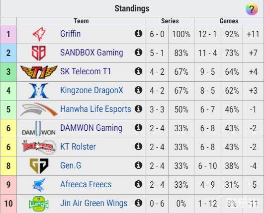 LCK在经历S8世界赛的失利之后,赛区人才流失了不少,老牌队伍都出现了实力下滑的现象,不够好在新人们的质量还不错,今年以GRF为首的新兴队伍实力强劲,未来很可能将会是LPL的首要大敌,LCK首轮前三周比赛结束后,GRF以6-0的战绩位居第一,小肠胜率也达到了恐怖的92%!