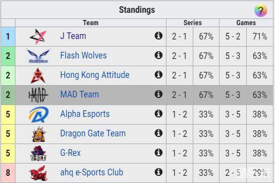 和LCK一样LMS也面临着S赛失利后的选手流失,这次的冬季转会期后LMS一哥闪电狼几乎重组,上单退役中野也来到了LPL打比赛,赛区整体实力大大下滑,队伍数量也仅剩8个,今年LMS很可能将成为全球实力最差的一个赛区,首轮前三周比赛过后,周杰伦的JT战队以2-1小场5胜2负的战绩暂居第一。