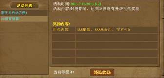 只要登录即可得新手登录礼包,看见礼包的内容是不是心动了呢?要淡定,后面还有更给力的呢。玩家只要提升到35级,就可以获得更丰厚奖励哦!心动不如行动,王国印记手机版期待您的加入!