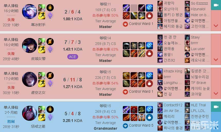 在韩服的定级赛中,Uzi使用最多的英雄依旧是卡莎, 但出装方面已经完全与国服的版本不一样了。