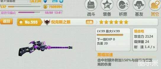 崩坏学园2眼狙使用心得,背击的神器。在眼狙出现之前用的是双散,抽到眼狙后毅然决然的选择了狙散流(其实是没有其他神器),一开始超级不习惯,一度觉得自己走错路了,但是用了1个月后就发现狙击已经换不下来了。