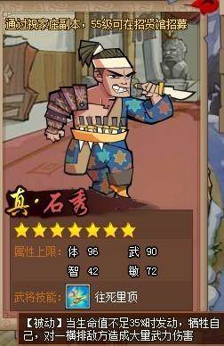 通关祝家庄副本后,寨主等级55级以上即可在招贤馆招募石秀。