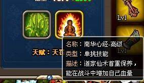 高级南华心经,经测试效果很不理想,同装备PK打不过4级战斗之心,南华心经增加血量比例到目前还是一知半解。