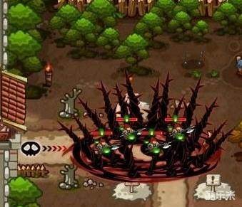 黑暗荆棘 伤害系数4.62 消耗魔法10点 技能恢复CD快 释放速度快 减速比水毒效果好,与 无双貂蝉血莲花、无双董卓的猩红收割减速效果一样,同属超强中毒减速技能,范围与水毒大小一样,如下图
