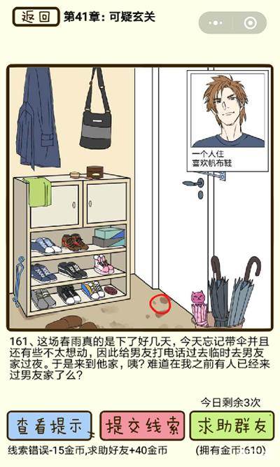 在再见吧渣男手游中可疑玄关第161关究竟该怎么过呢?在这一关中男友出轨的证据究竟是什么呢?相信很多小伙伴们都有这样的疑问,那么下面就来看一下吧!