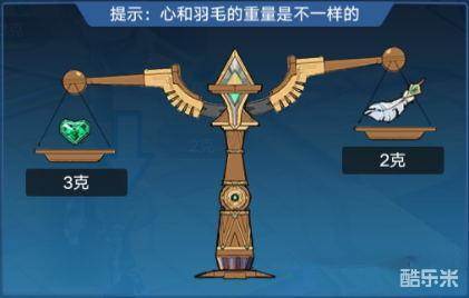 为了快速通关,我们只需要知道2和3的最小公倍数为6,即天平至少需要3颗心和2根羽毛才能平衡。这意味着我们需要战胜黑袍祭师1次和白袍祭师2次。