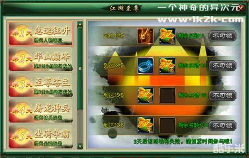 江湖至尊是对新手来说极为重要的活动,如果新手想要在游戏中占据优势的话,就需要抓紧时间完成里面的任务。否则,一旦新手期过,这些任务就不能再进行了。每个任务有三天的执行时间,玩家可以在这段时间内完成任务。