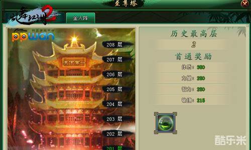 而至尊塔中的铜人阵是从101层开始,金人阵则是从201层开始,玩家只有完成了木人阵的挑战才可开启铜人阵的挑战,完成铜人阵的挑战才可开启金人阵的挑战!玩家每挑战到10的倍数层时,还可获得额外的极品奖励哦!当玩家将木人阵、铜人阵和金人阵全部挑战完成后,你将成为ppwan《乱舞江湖2》中武林人人称赞的英雄豪杰,当之无愧的天下第一!