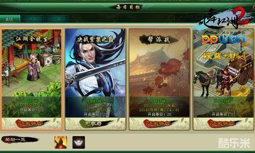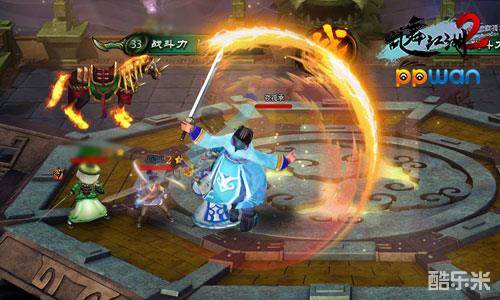 在ppwan《乱舞江湖2》中,玩家在做完20级主线任务之后,就可以开启决战紫禁之巅的活动副本。在活动的过程中为了让玩家能够稍微接近城主和剑神实力一点点,特地允许玩家在boss战时使用【召唤黄衫女】和【金锭鼓舞】功能,可以增加额外的战斗BUFF。