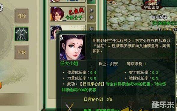 爱六娃《乱舞江湖》正常的玩家一般都是前排肉,中后排输出控制这类的,所以针对任大小姐的武功:攻击后排目标,有50%几率使目标陷入昏睡3回合。是的!你没看错没错!二分之一的概率昏睡三回合,她可以越过前排直接攻击后排目标,若触发昏睡属性概率,那么这局若不是实力悬殊,基本已经稳操胜券了。