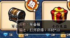 商城里面有一个叫做军备箱的东西,玩家打开就可以获得10个木材,价格在2QB左右,缺少木材的玩家可以考虑。