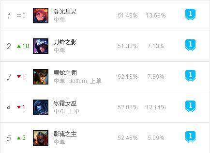从数据开看泰隆和劫双双挤入T1排行榜,尤其是泰隆上升10位成为T1排行榜第二名,可以说非常恐怖。接下来就为大家解析这5名英雄。
