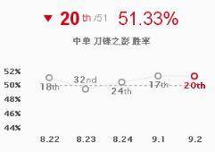 泰隆的胜率有所下降但是依旧强势,强势挤入T1排行榜。登场率上升了4位可见大家对于这位刺客的喜爱。