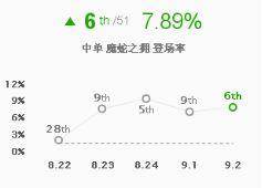 蛇女的胜率在前几个版本都非常高虽然这个版本有所下降但是依旧强势,登场率在这个版本也有所提升。