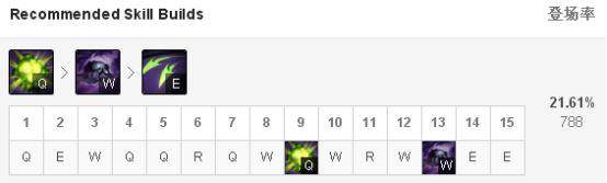 Q技能是我们的主要伤害技能并且是我们推线技能,W技能是我们的主要控制技能有效地配合我们打出余震。