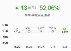 冰女是近几个版本的宠儿,冰女凭借出色的爆发和控制深受玩家们的喜爱,冰女胜率上升7位登场率上升4位。