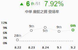 蛇女的登场率在近期版本起起伏伏,但是实际上蛇女在9.2版本的登场率还是小幅上升。