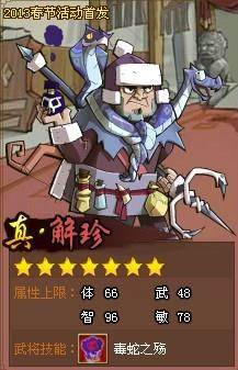 作为QQ水浒出的第一个输出型法术天将,解珍的攻击方式和花容一样都是攻击每排第一个,但是比花容优势的地方是作为法将不需要怒气,花容需要两回合集满怒气才能打3个。现在QQ水浒各种法阵崛起,如果你是玩法阵的,解珍绝对不容错过。