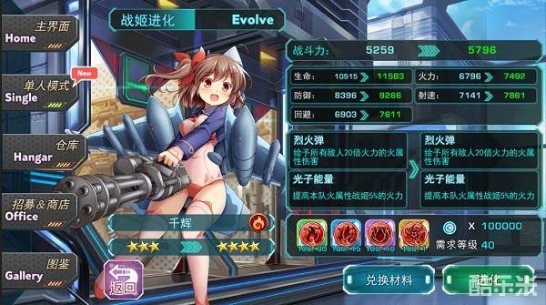 在游戏《音速少女队》中,所有的美女战姬都是可以进行升级进化的,每次进化都能提升战姬的品质,目的是让所有战姬都能不断的进行成长。在游戏的仓库界面中选择战姬进化按钮就能进入到进化界面了。每个战姬在进行进化时都有相同的几个条件类型限制,等级、信用币、属性进阶。