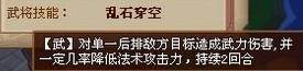 张清的技能为【乱石穿空】:对单一后排敌方目标造成武力伤害,并一定几率降低法术攻击力,持续2回合~