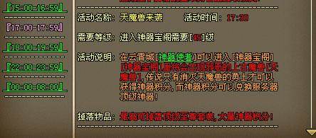 混沌魔域的“混沌魔君”带领魔界大军强袭王城,妄图统治全人类,勇士们是时候出击了!消除恶魔,匡扶人间正道!《武尊》怪物攻城激烈程度与死亡禁地之战不相上下,每天19:00与23:00两个时间段开启挑战,BOSS将带领大量怪物进攻主城,消灭它们,玩家将有几率获得本服务器内所有套装哦!