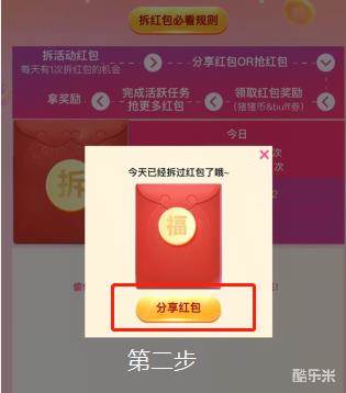 【先拆红包再分享】 页面点击“拆”按钮,有个红包弹窗,点击“分享红包”,这时分享出来的链接,才能被大家抢哦,自己也能抢。其余分享操作分享出来的都是页面本身,并不是红包啦~希望大家周知~