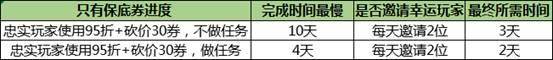 在活动期间,88%的玩家还有保底的两张券奖励,“95折扣券”和“砍价30券”,如果配上邀请幸运玩家,只需要2-3天即可完成,就算没有幸运玩家的帮助,你也只需要10天,就能拿到奖励,本次活动将在2月28日结束,你完全有时间拿到所有奖励!