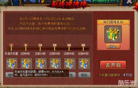 每日均可免费领取1个操练礼包(内含:天玑符*15)。