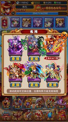 暴打魏蜀吴阵容,你是不是抽到自己喜欢的武将了呢。下面就开始搭配吧。这才是这个游戏最大的乐趣哦。 贾诩加5可以控制闪避高在1号位置在合适不过了,黄月英也有不错的控制加给力的识破,马超的单体爆发牛加怒气可以配合贾诩更加快的控制,主角前面很鸡肋没用。