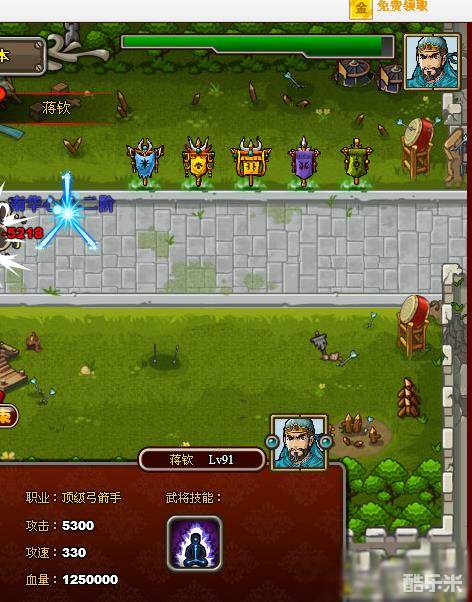 从此图片中可以看出蒋钦是一名顶级弓箭手,他的攻击和攻速以及血量都是非常高的,大家不可小觑噢。