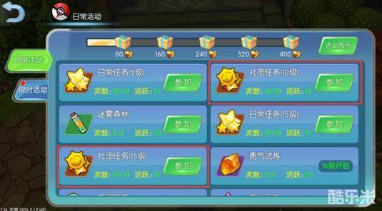 社团日常一共2组,分别在训练师10级和15级的时候开启,每组10环。