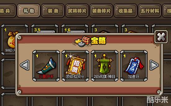 礼包内容:火凰护手*1,顶级招贤令*1,2级战旗-神目*1,加速符*1。