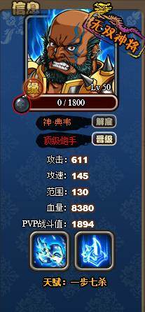 神典韦合成条件:无双典韦+任意无双神将+传奇贾诩+3名任意传奇武将
