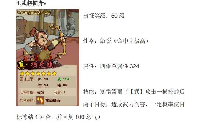 最后编辑于6年前在水浒传中,项元镇这个人物大家并不是很了解,更不用提他的作战实力了。在QQ水浒里,项元镇又是怎样的一个人物,玩家们又该如何使用他呢?