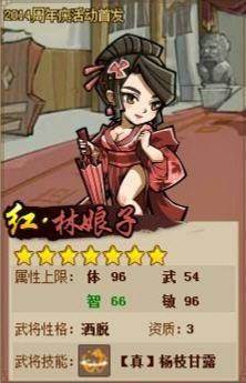林娘子的技能给人感觉就是红二娘的加强版,初敏多18点,怒气多20点。入手价格比较高,升星成本也比较高,7星满敏捷为67左右,只有无双属性才能达到96敏。