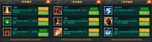 猫女的突破技也是提升其生存能力的。一突绝壁加三突的恶念守护能大幅增强猫女战斗时的生存能力,打高级副本不会被轻易秒掉。二突必选迁怒,让援助位猎人能更快出手,可以增强阵容整体实力,非常实用。如果猫女防御堆得够高,没有生存压力,那么三突技能怪力也是不错的选择,可以提高阵容整体的输出。