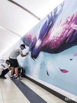 值《轩辕传奇手游》全平台不限号火爆进行之际,广州墙粉俱乐部成员、KISSFUNK合作艺术家骆宗杰先生,在7月28日至29日期间,于北京国贸地铁站进行了一场趣味性极强的涂鸦表演。值得一提的是,骆宗杰先生自2012年投入涂鸦创作以来,目前已完成几百幅街头涂鸦作品,就读于广州美术学院雕塑专业。在他的笔下,一只仅存活于上古神话传说的“玄鸟”降临在了北京地铁站的墙上,朱红与玄黑交错的羽毛,炯炯有神的双眼,振翅飞翔的英姿,吸引了不少乘客与之合影留念。本次涂鸦展亦会持续至8月18日,有兴趣的朋友们均可前往观看,欣赏到这只由现代涂鸦美术所呈现的华丽玄鸟。
