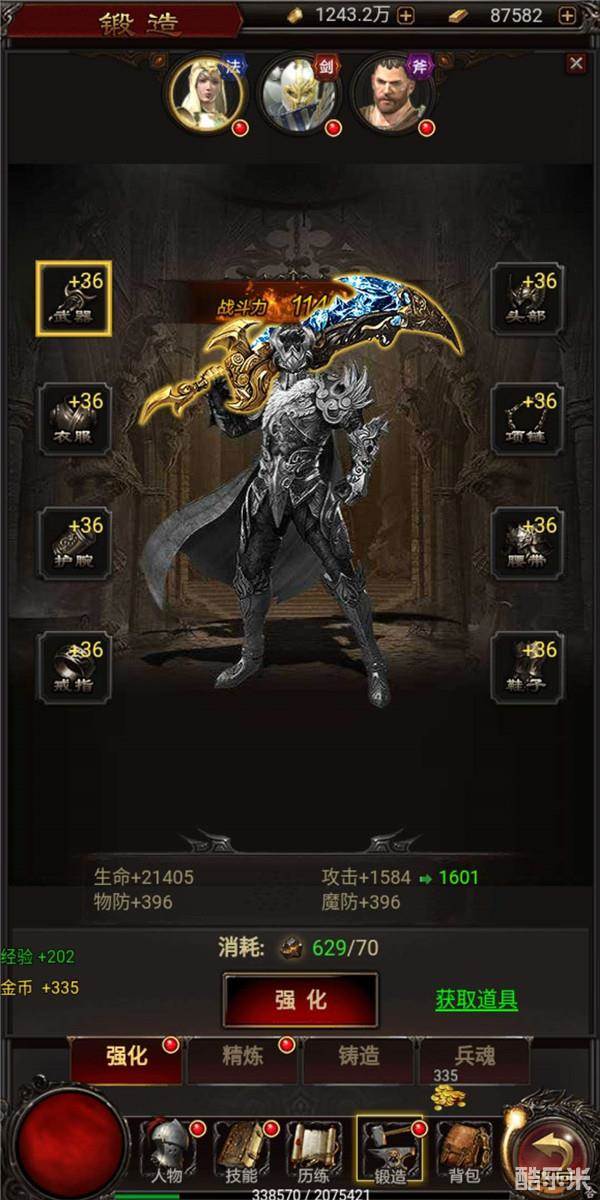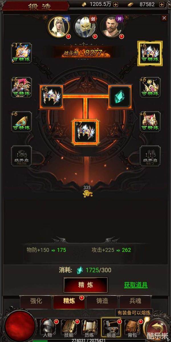 每个角色每个装备部位都可以进行精炼,精炼属性上有所不同,更换装备不影响精炼等级,材料获取途径较多,竞技、击杀BOSS等。