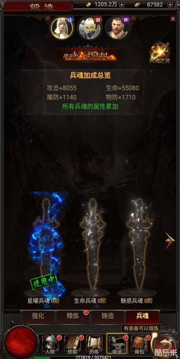 每个角色都可激活3种兵魂,兵魂激活属性不一,玩家自由组合,兵魂增加的属性可以叠加,材料可以通过刷怪、副本获取。